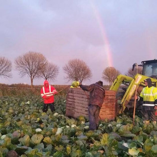 Samen met buren wordt jaarlijks een teeltplan gemaakt voor het zaaien en oogsten van de kool. In samenwerking met zuurkoolfabriek Kramer worden schema’s en verdelingen gemaakt. Op deze manier wordt het risico weggenomen. De prijsafspraken worden van tevoren gemaakt, de rassen worden verdeeld en je weet ook hoeveel hectare van je land jaarlijks naar de kolen gaat. Afhankelijk van het ras, worden de kolen tussen mei en juni geplant en tussen oktober en november geoogst. De kolen worden geoogst wanneer ze rijp zijn, dat kan je zien aan de vorm van de kool, de buitenbladeren, de kleur en aan het gewicht. Een ‘goede’ kool kan wel 10 kilo wegen! De kolen worden met de hand geoogst door middel van een soort broodmes en worden daarna met een trekker ‘opgeprikt’ in een kist. Om 1 vrachtwagen vol te laden, moeten Tom en Tineke 2 dagen werken met in totaal 6 mensen. De zuurkool wordt vervolgens verwerkt in een fabriek in Noord-Holland. De biologische zuurkool wordt in plastic zakjes voor de supermarkten verpakt en de Demeter zuurkool wordt in een fabriek in Friesland in glazen potten verwerkt.
